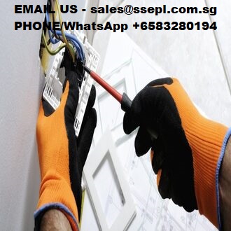 Office Electrical Troubleshooting Contractor Electrician technician at work blocks the cable between the clamps of a socket in a residential electrical installation